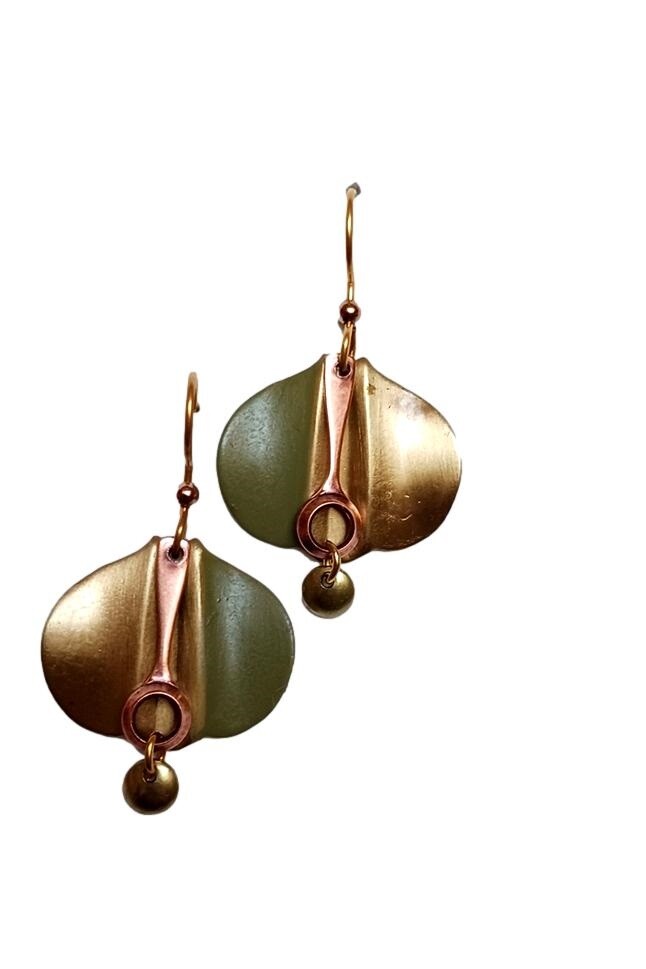 Mixed Metal Layers with Bead Dangle Earrings on surgical steel fish hook surgical steel ear wire. 1.5 inch drop, made in Vermont, USA