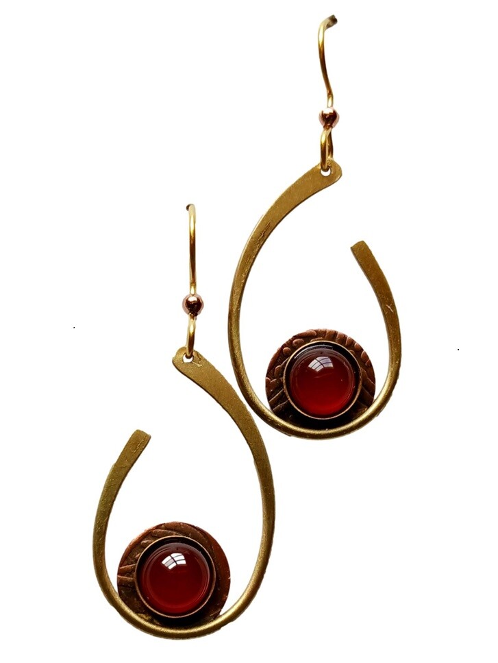 Open Teardrops with Cornelion stone dangle earrings on surgical steel fish hook ear wire. 1.75 inch drop- Made in Vermont, USA