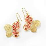 Large brass and enamel butterfly drop earrings with fish hook earwire.